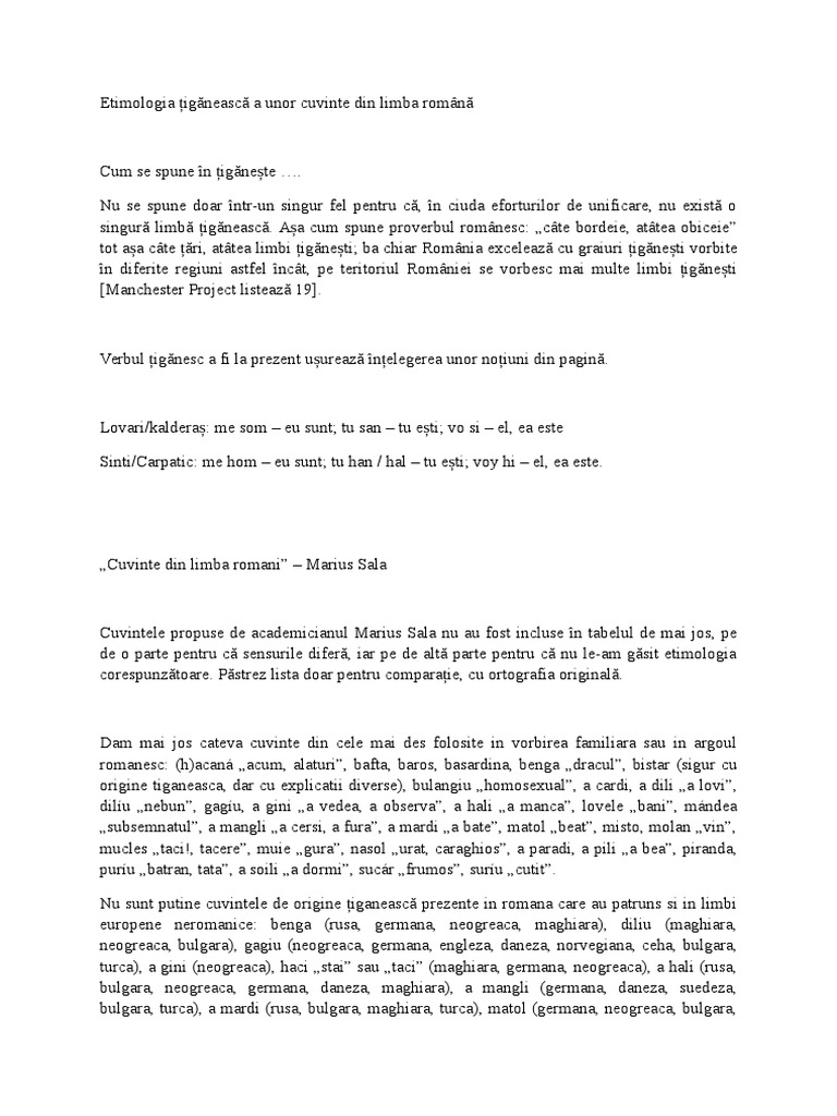 Etimologia țigănească A Unor Cuvinte Din Limba Romană