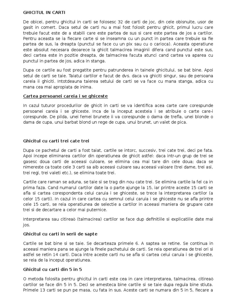 Ghicitul In 24 De Carti Ghicitul In Cartile De Joc
