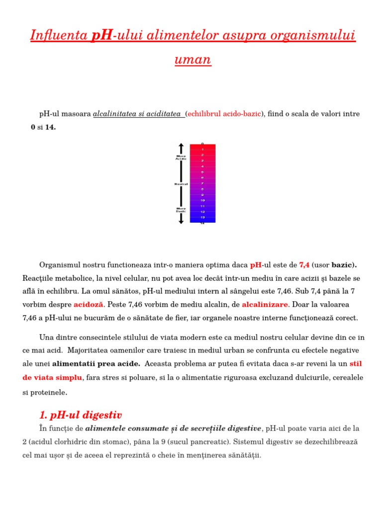Influenta Ph Ului Alimentelor Asupra Organismului Uman