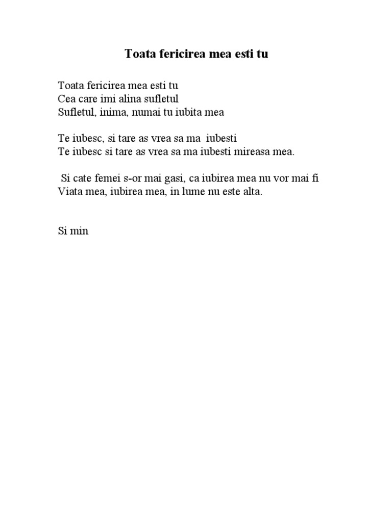 Fericirea Mea Esti Tu Versuri