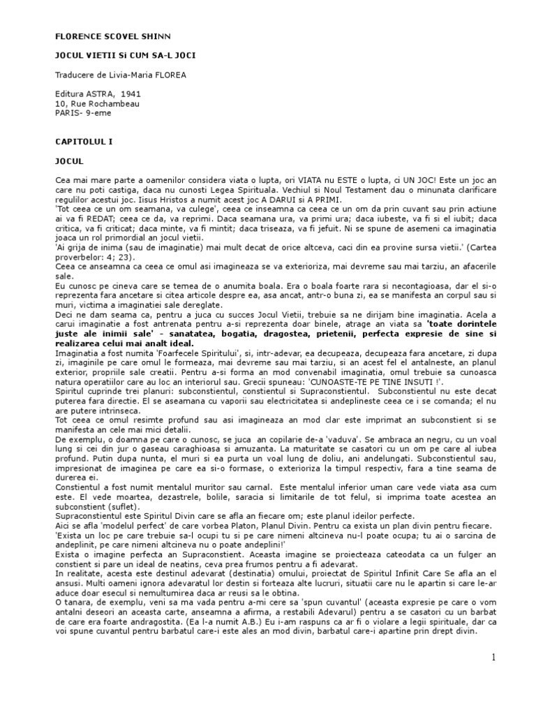 Pdf Florence Scovel Shinn Jocul Vieţii Si Cum Să L Joci Francy Florescu Academia Edu