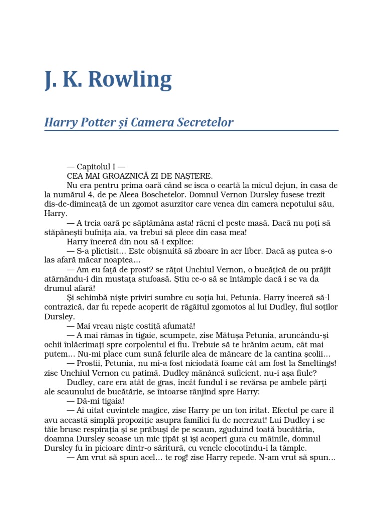 J K Rowling V2 Harry Potter Si Camera Secretelor Pdf
