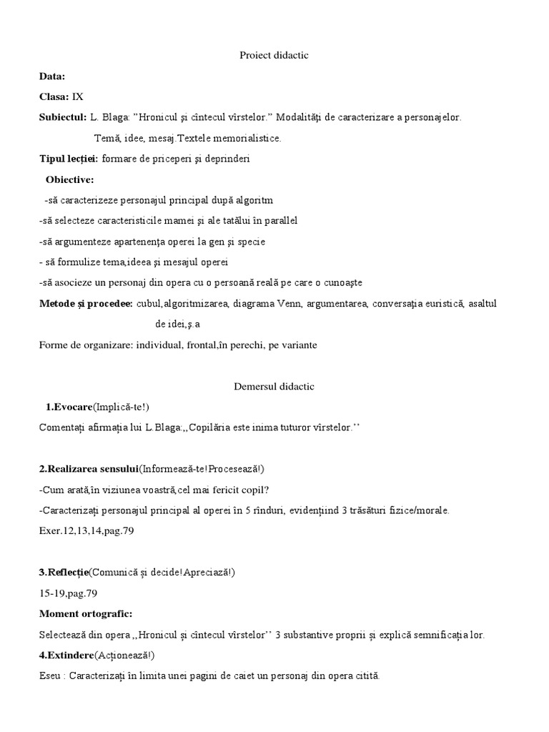 Hronicul Si Cantecul Varstelor Plan Eseu
