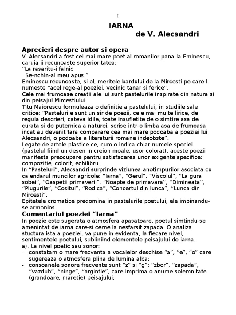 Referat Pastelul Iarna De Vasile Alecsandri 338576 Graduo