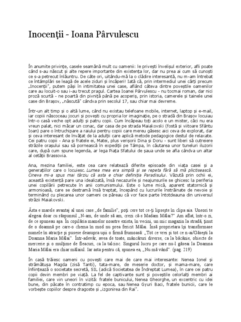 Rezumatul Cărții Inocentii De Ioana Parvulescu Rapid Va Rog Frumos Poate Avea Macar 30 Randuri Brainly Ro