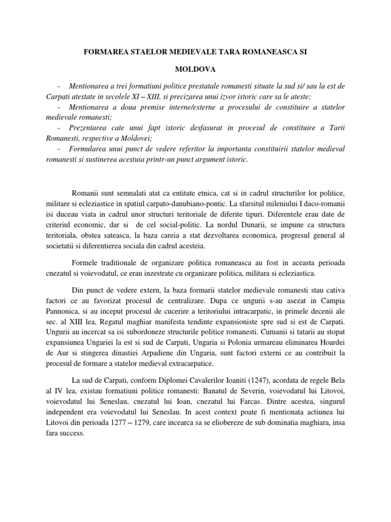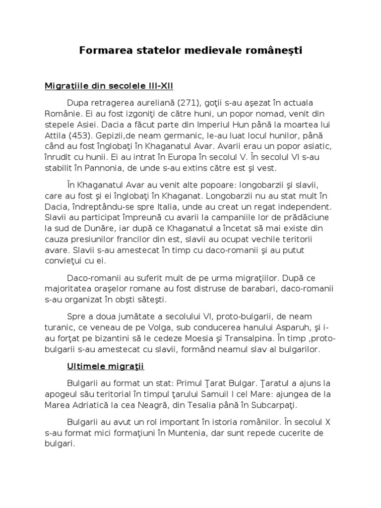 Referat Formarea Statelor Medievale Romanesti 295112 Graduo