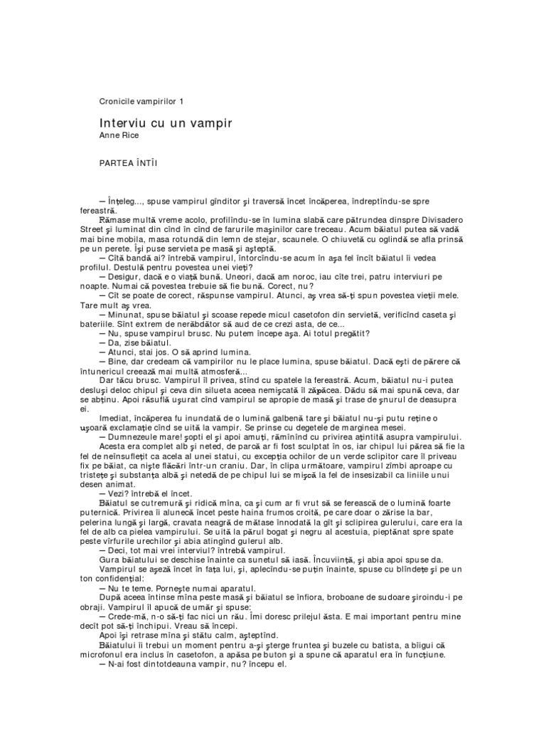 Interviu Cu Un Vampir Cronicile Vampirilor 1 Anne Rice Pdf